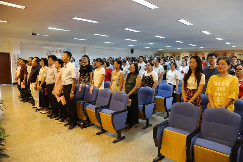 江陰一中全體教職員工共同參加了這次典禮。本次典禮由查建東、包彩娥老師主持。